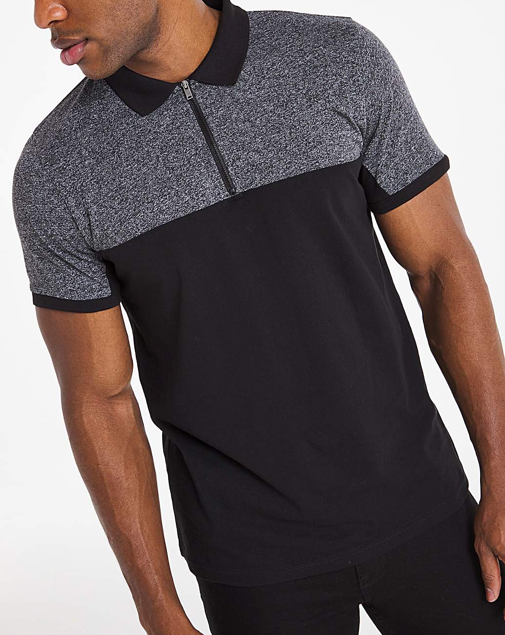 Black Grey Zip Neck Grindle Polo Reg Jacamo